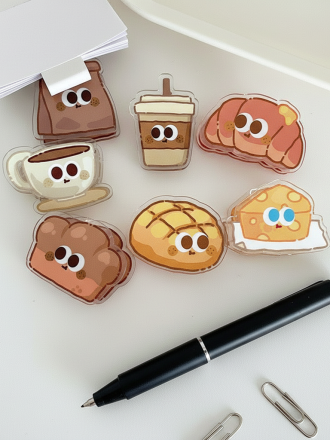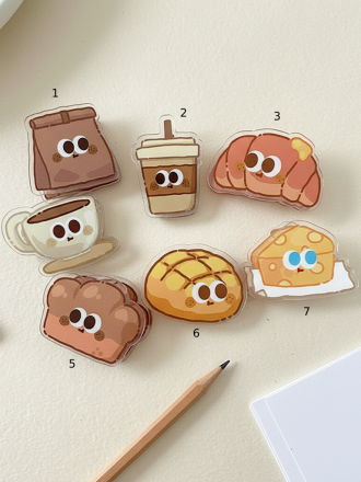 • طرح‌ها: نان تست، کروسان، قهوه، پنیر، نان همبرگری (Melon Pan)