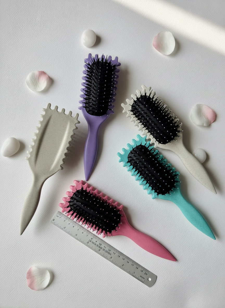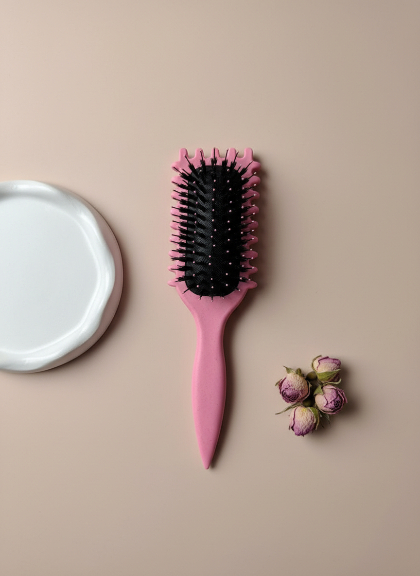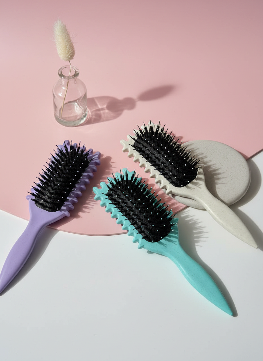 تفاوت اصلی این محصول با برسهای معمولی، در طراحی بدنه آن نهفته است. لبههای کناری این برس “شیار” یا دندانههای برجسته (Side Edges) دارند. این طراحی هوشمندانه، دستههای مو را هنگام شانه کردن از هم تفکیک میکند. وقتی مو را با لبهی برس باونس کرل میکشید، ابزار تارها را مانند روبان از هم جدا میسازد و حالتی فنری به آنها میبخشد. این عملکرد الگوی طبیعی فر مو را حفظ میکند و وز (Frizz) مو را به شدت کاهش میدهد.