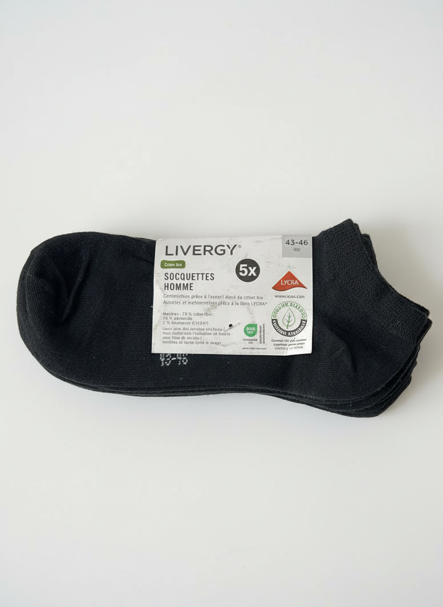 استایل رسمی و روزمره خود را با پک ۵ عددی جوراب مردانه مشکی برند لیورجی تکمیل کنید. اگر به دنبال جورابی هستید که هم با کتانی و هم با کفش‌های رسمی ست شود، ما این محصول باکیفیت آلمانی را پیشنهاد می‌کنیم. رنگ مشکی یکدست این جوراب‌ها، آن‌ها را به کاربردی‌ترین آیتم در کمد لباس آقایان تبدیل می‌کند. برند لیورجی (LIVERGY) با استفاده از پنبه ارگانیک در بافت این محصول، تنفس‌پذیری و راحتی را برای پاهای شما تضمین می‌کند.