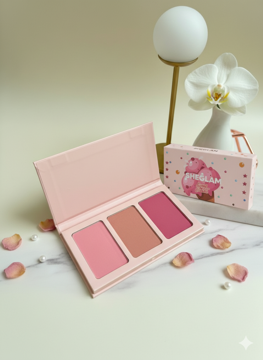 گونههایی جذاب و برجسته با پالت رژگونه سه تایی شیگلم (SHEGLAM) مدل Sweet Cheeks