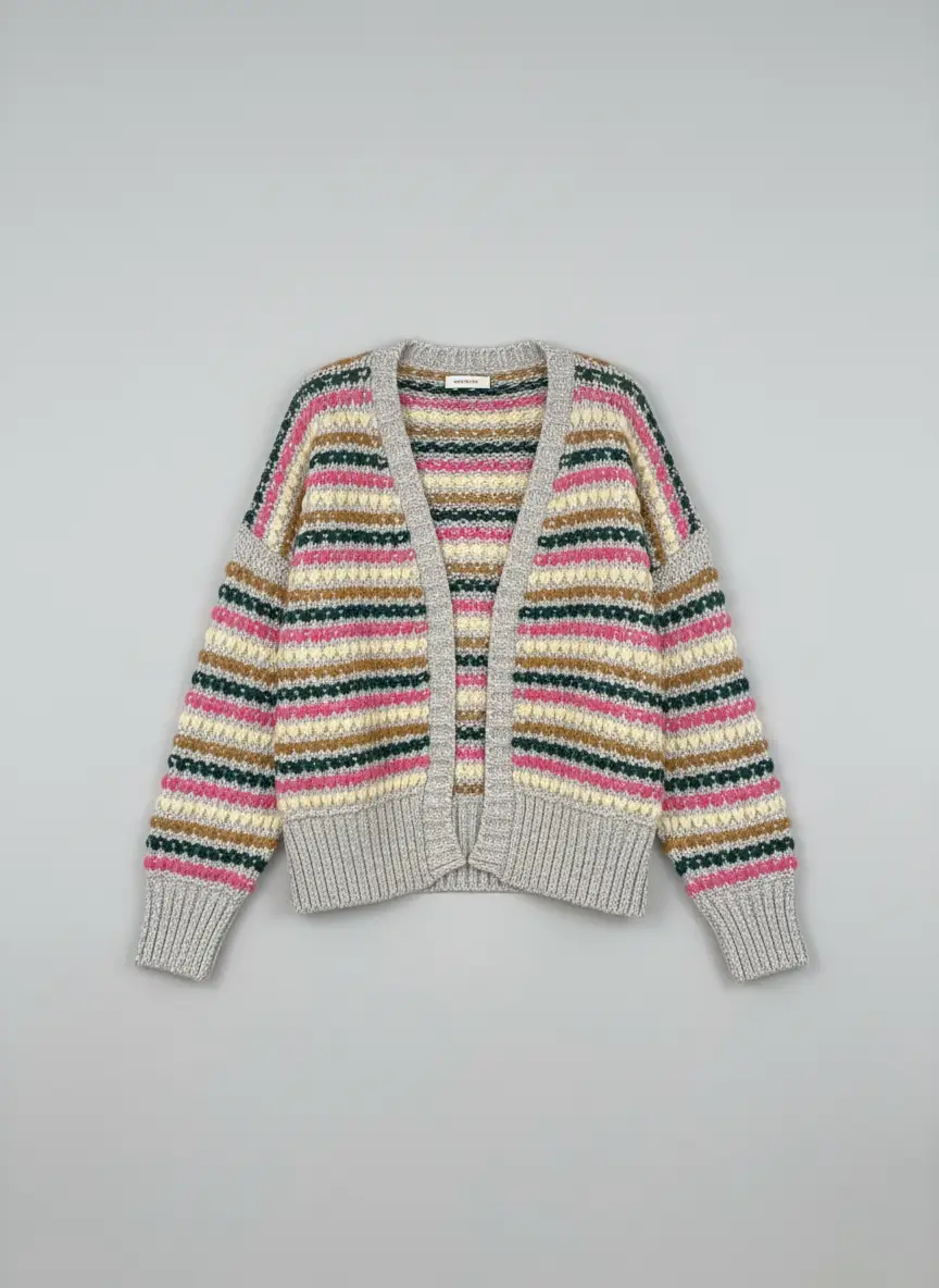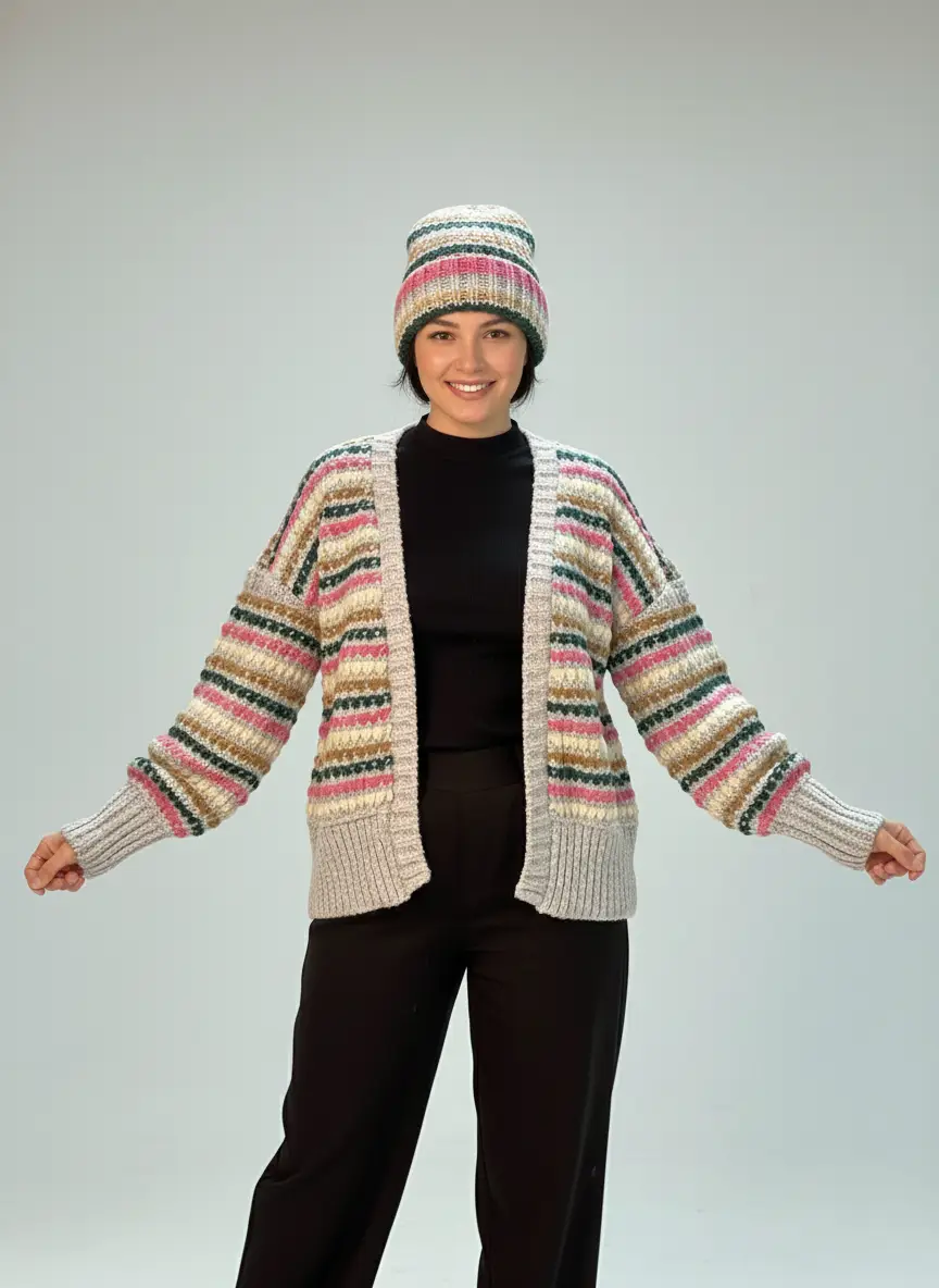 با ژاکت بافت راه راه رنگی، گرما و رنگ را به استایل پاییزه خود بیاورید. این کاردیگان نرم و لطیف، انتخابی ایده‌آل برای روزهای سرد است. کیفیت عالی و تن‌خور بی‌نظیر. همین حالا خرید کنید.