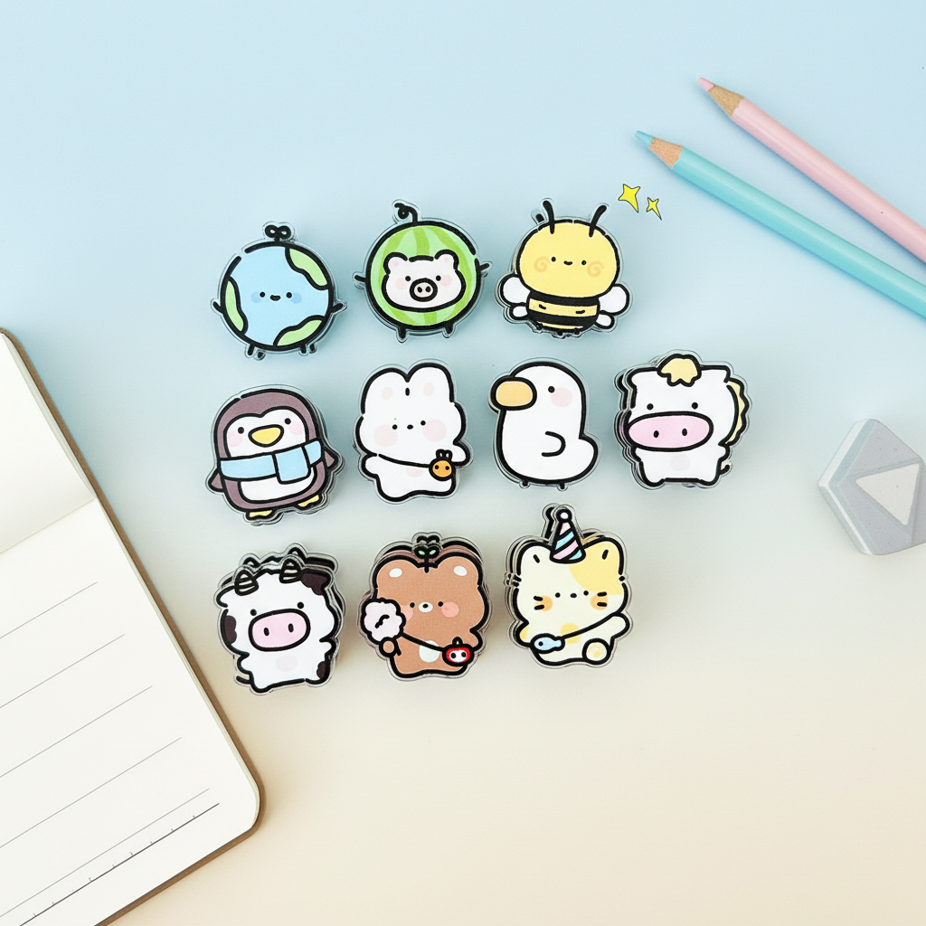 تنوع طرحهای این محصول (شامل گربه، خرس، اردک، خوک و کره زمین)، دست شما را برای انتخاب باز میگذارد. خرید این گیرهها به عنوان جایزه برای دانشآموزان یا هدیه برای دوستان، انتخابی هوشمندانه است. این ابزارهای کوچک، انگیزه درس خواندن و نظم شخصی را در کودکان افزایش میدهند.