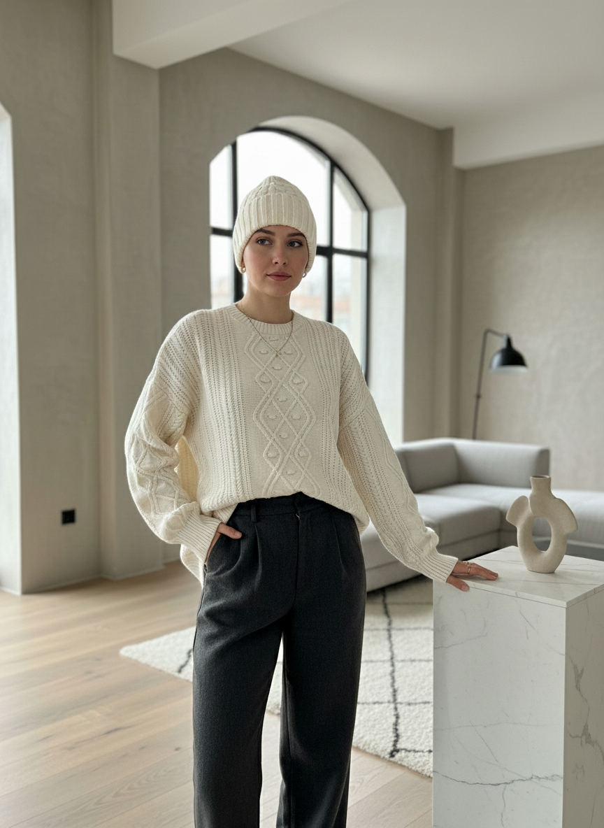 ست کردن این پلیور آسان است: یقه گرد کلاسیک و تنخور استاندارد آن، ست کردن با هر لباسی را آسان می‌کند. رنگ کرم (شیری) آن، یک رنگ خنثی، آرامش‌بخش و بسیار کاربردی است. شما می‌توانید آن را به راحتی با هر پالت رنگی، از تیره تا روشن، هماهنگ کنید.